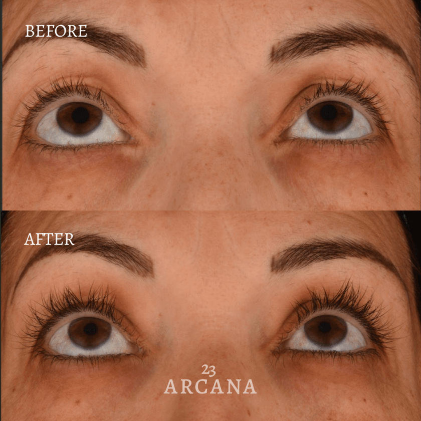 We have developed and registered the Arcana 23® formula, which has been clinically tested in an exclusive third-party study. Our Arcana 23® eyelash enhancing serum demonstrated the following results.